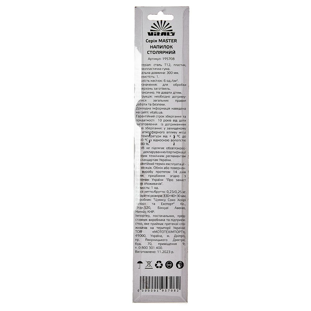 Опис напилка столярного плоского 200 мм Vitals Master