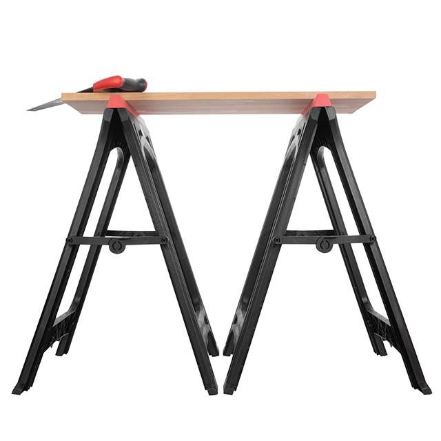 Легкая и в то же время прочная конструкция из пластика позволяет без особого труда транспортировать козлы в любое место. Они компактно складываются и не занимают много места во время хранения.