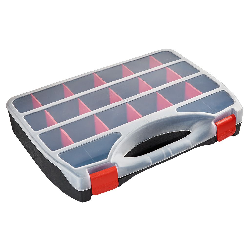 Він стане незамінним для зберігання наборів інструментів та дрібних деталей домашнього майстра, творчої рукодільниці, затятого рибалки та мисливця, адже грамотний поділ на секції дозволяє системно організувати зберігання дрібних деталей.