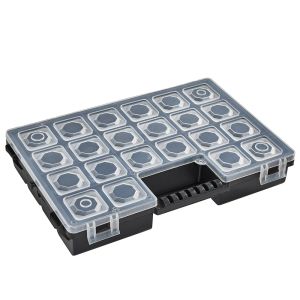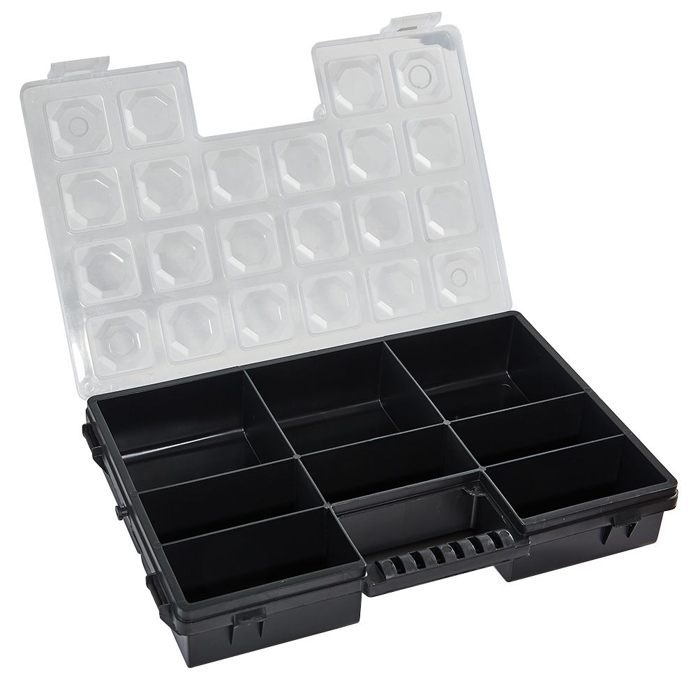 Він стане незамінним для зберігання наборів інструментів та дрібних деталей домашнього майстра, творчої рукодільниці, затятого рибалки та мисливця, адже грамотний поділ на секції дозволяє системно організувати зберігання дрібних деталей.