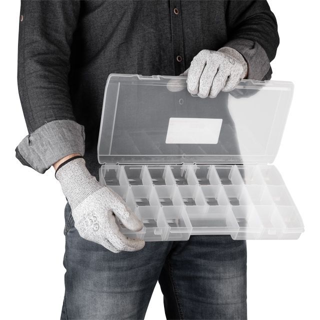 Бокс для хранения изготовлен из полипропиленового материала, он долговечен в использовании. Фиксированный ячейки вмещают ваши мелкие предметы, делая хранение и использование более организованным и удобным. Также обеспечивают порядок на вашем рабочем месте.