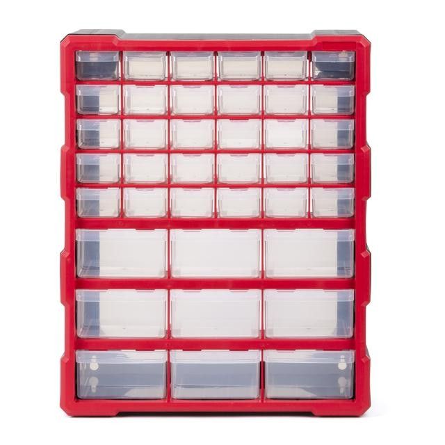 Прозрачные стенки позволяют увидеть, что хранится в лотках, это упрощают процесс поиска. Удобные ручки помогают выдвигать лотки, а ограничители на верхних стенках ячеек не позволяют им выпадать.
