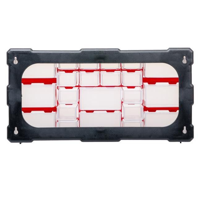 Вертикальный органайзер с множеством различных отделений поможет навести порядок на рабочем месте, дома или в гараже. Хорошо продуманная вместительная конструкция упрощает хранение и поиск небольших вещей, например: крепежных элементов, некрупной фурнитуры, метизов, бижутерии, бисера и т.п.