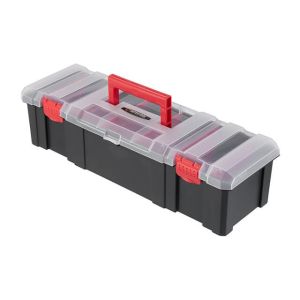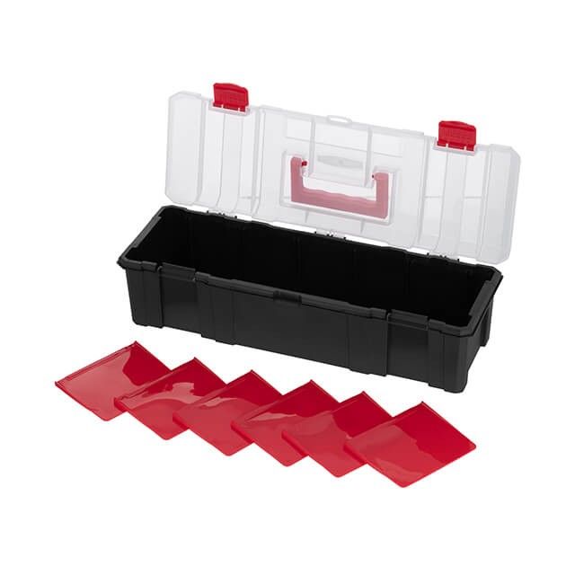 Крышка изготовлена из прочного полипропилена и устойчива к сколам. Прозрачность крышки помогает быстро находить необходимые предметы. Органайзер имеет удобную ручку для транспортировки.