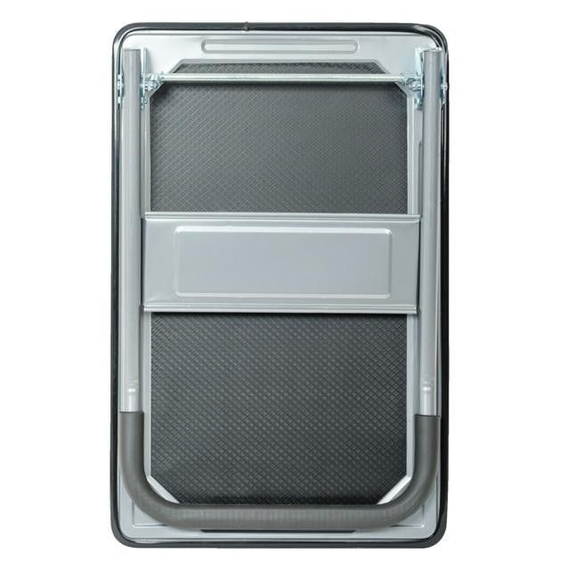 Тележка легко складывается и принимает более компактное положение за счет рычага в основании ручки. Складной рычаг с высокоэластичной пружиной растяжения, обеспечивает длительное использование без деформации. Таким образом тележку проще и удобнее хранить, она занимает намного меньше пространства.