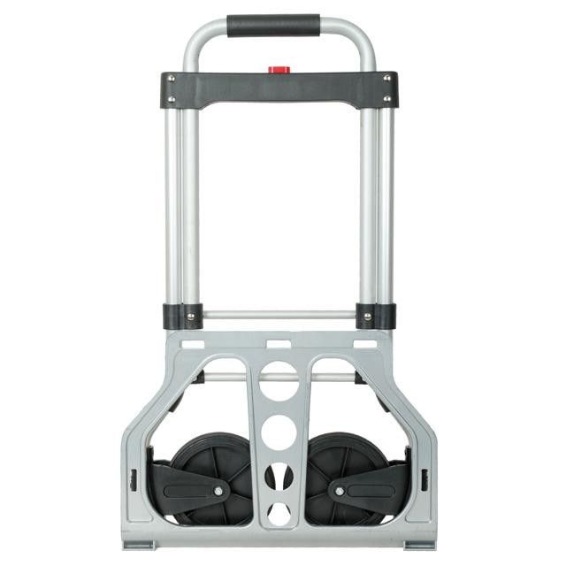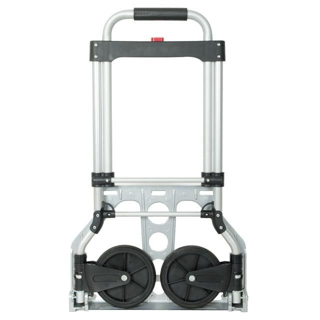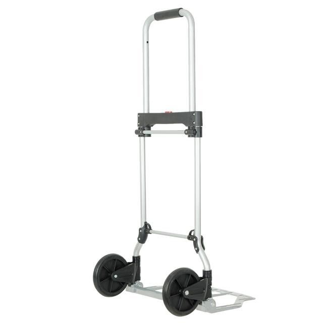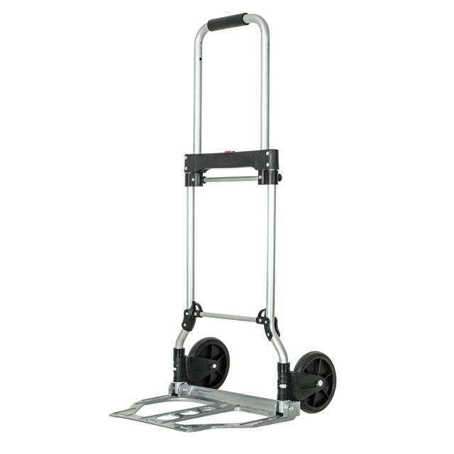 Основными преимуществами этой ручной тележки являются её легкий вес (3.8 кг) и быстрый переход в рабочее состояние. В сложенном виде она очень компактная (710х420х50 мм), легко помещается в багажник автомобиля. Подготовка к работе осуществляется в два действия: