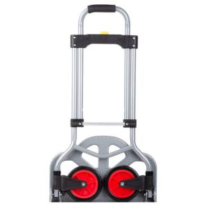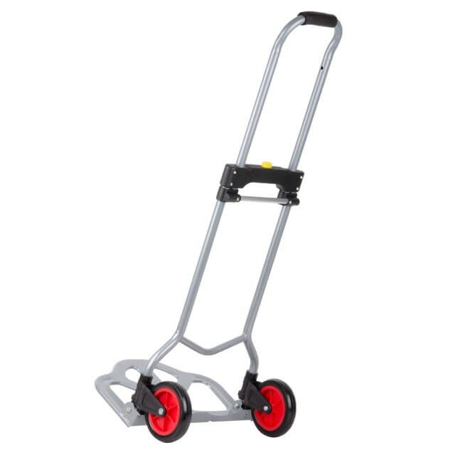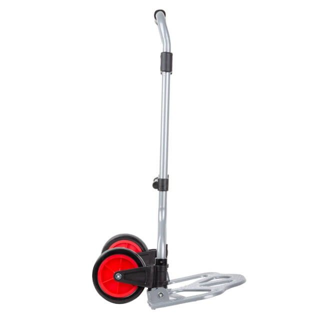 Основными преимуществами этой ручной тележки являются её легкий вес (3.6 кг) и быстрый переход в рабочее состояние. В сложенном виде она очень компактная (710х390х50 мм), легко помещается в багажник автомобиля. Подготовка к работе осуществляется в два действия: