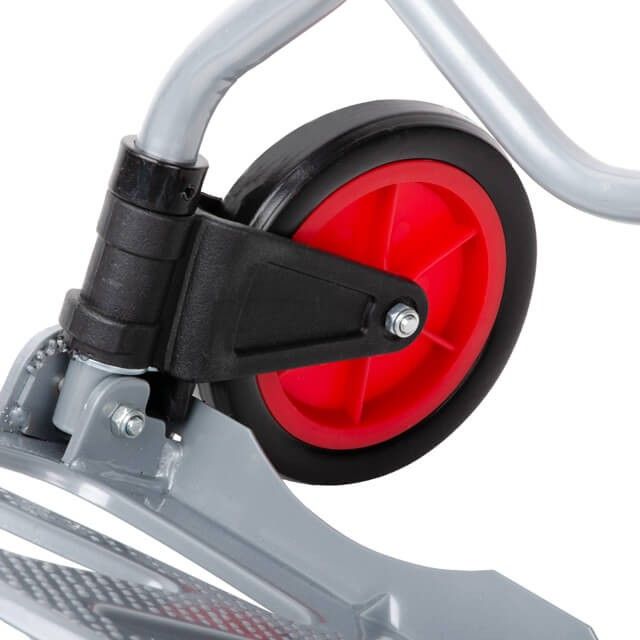 Прорезиненные колеса большого диаметра (130 мм) обладают мягким ходом. Ручная тележка очень отзывчива в управлении благодаря легкому весу, небольшим габаритам и ручке на удобной высоте.