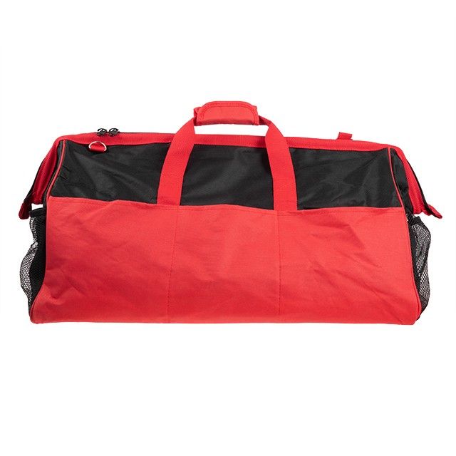 Нагруженная сумка для инструмента не рвется и держит свою форму т.к. изготовлена из плотного полиэстера (600d) с металлическим каркасом вдоль молнии и уплотненным дном.