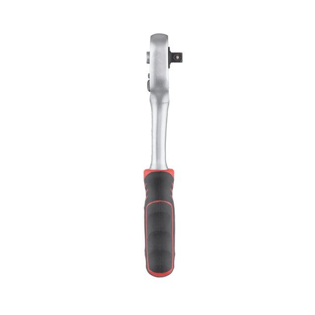 Двухкомпонентная рукоятка с резиновыми вставками гарантирует надежное сцепление даже с грязными или испачканными в масле руками. Прочная, удобная трещотка комфортно лежит в ладони во время работы.