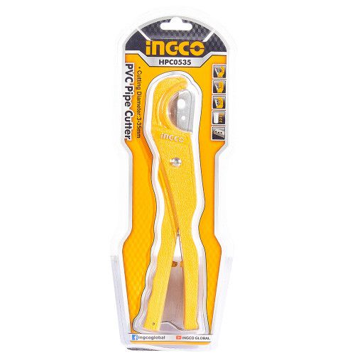 Ножиці INGCO HPC0535 призначені для різання пластикових труб діаметром від 3 до 35 мм. Оснащені фіксатором ручок для зручного й безпечного зберігання. Різальна частина виконана зі сталі марки 4cr13. Довжина ножиць 210 мм.