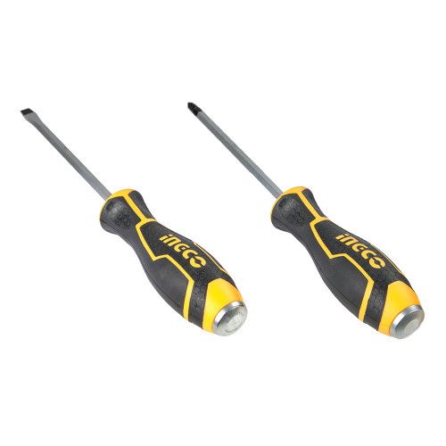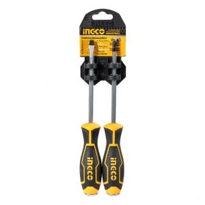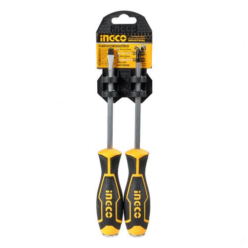 Набір викруток ударних 2 шт INGCO INDUSTRIAL містить в комплекті одну викрутку з прямим шліцом і одну викрутку з хрестовим.