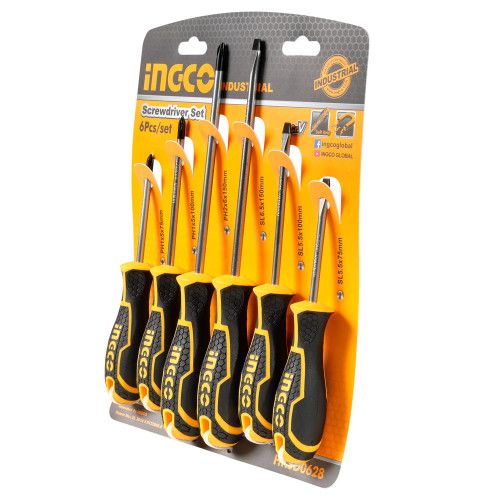 Набір викруток 6 шт INGCO INDUSTRIAL містить в комплекті три викрутки з прямим шліцом і три викрутки з хрестовим. Інструменти дозволяють закручувати й відкручувати різні кріпильні елементи.