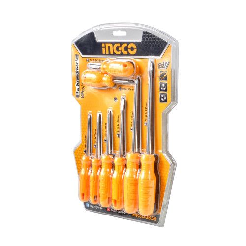 Набір викруток 8 шт INGCO містить в комплекті чотири викрутки з прямим шліцом і чотири викрутки з хрестовим. Інструменти використовуються для закручування і відкручування кріпильних елементів з різьбленням.