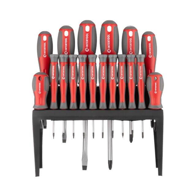Набор отверток 18 ед. (SL2.5*50 мм, SL3.0*50 мм, SL5.0*75 мм, SL6.0*38 мм, SL6.0*100 мм, SL8.0*150 мм, PH0*50 мм, PH00*50 мм, PH1*75 мм, PH2*38 мм, PH INTERTOOL VT-3350