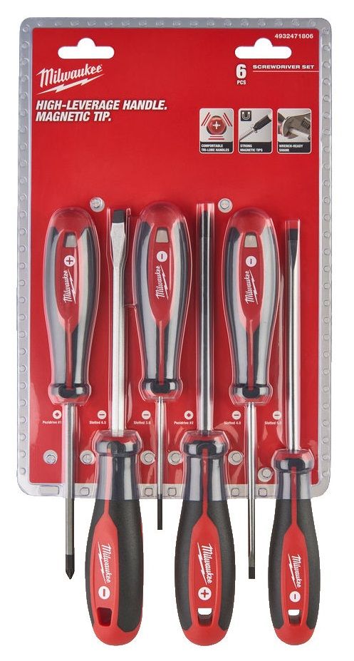Набор отверток магнитных с трехгранной рукояткой MILWAUKEE, (PZ1/PZ2/SL3/SL4/SL5.5/SL6.5), (6шт)