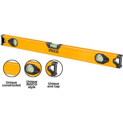 Будівельний алюмінієвий рівень 600 мм INGCO — інструмент для виявлення відхилення поверхні по горизонталі та вертикалі.