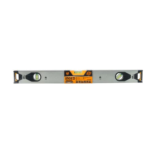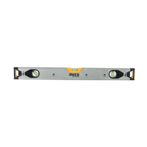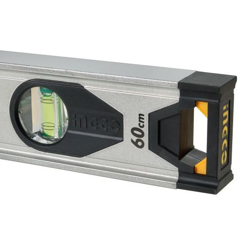 Будівельний алюмінієвий рівень 60 см INGCO INDUSTRIAL оснащений трьома очками та призначений для виявлення відхилення поверхні по горизонталі й вертикалі.