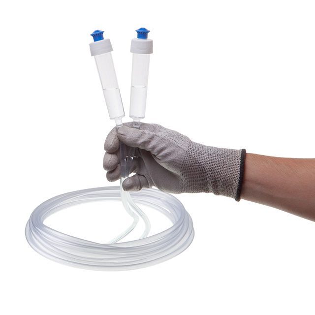 - Опустить конец трубки в ведро с водой, выставив ведро выше другого конца трубки. Из другого конца высосать воздух, жидкость поступит в трубку самотеком.