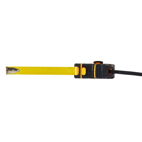 Надійний фіксатор на корпусі служить для зупинки та скручування стрічки. Для зручності у використанні корпус рулетки покритий гумою.