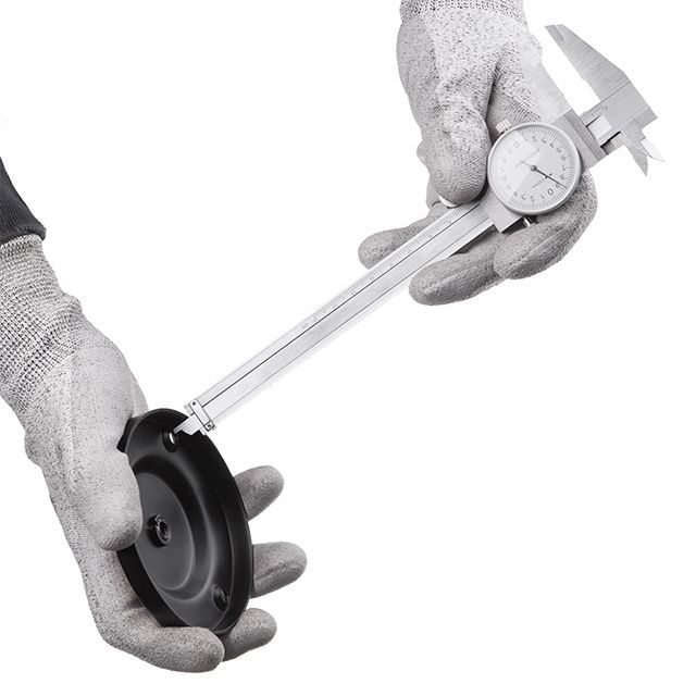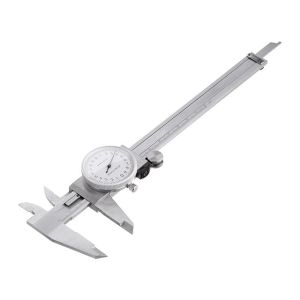 Штангенциркуль изготовлен из высококачественной нержавеющей стали, которая обладает стойкостью к ржавлению, не подвержена истиранию и характеризуется высоким ресурсом работы. Метрическая шкала выгравирована, легко читается и не стирается со временем. Крупный циферблат отображает показатели с точностью 0.02 мм.