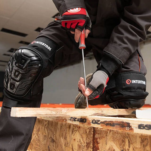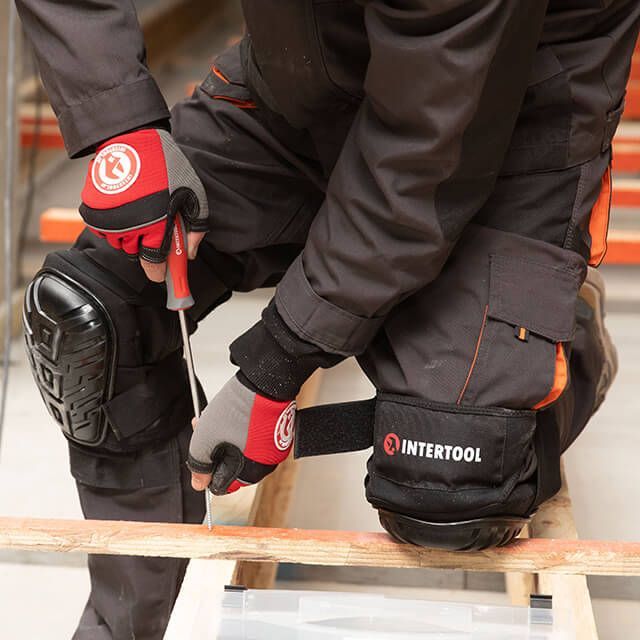 Строительные наколенники INTERTOOL SP-0054 - это незаменимый аксессуар для мастера в процессе строительных работ, таких как: укладка плитки, монтаж плинтусов, а также уборки, работы в саду и других задач вынуждающих опираться на колени. Препятствуют травмам, перегрузкам и переохлаждению коленных суставов во время длительных работ.
