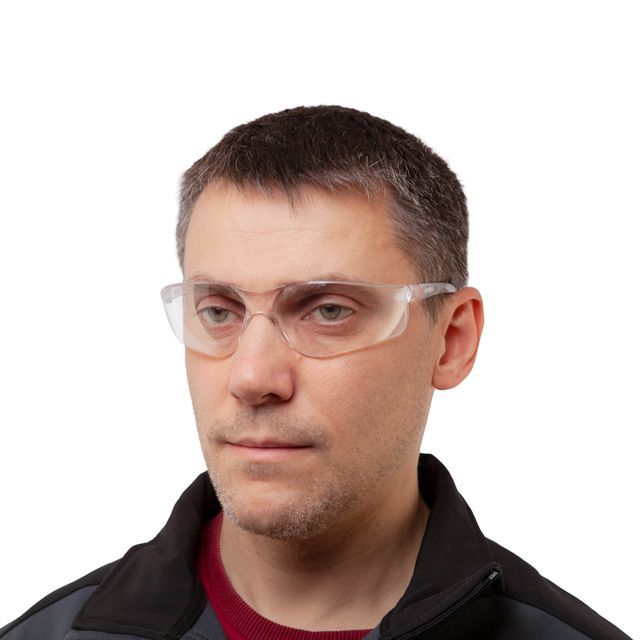 Очки полностью выполнены из прочного поликарбоната и защищают глаза от механических повреждений, что актуально во время выполнения строительных, монтажных работ с различным инструментом, поскольку линзы выдерживают удары мелких твердых частиц. Также очки защищают от брызг различных жидкостей, капель, пыли и пр.