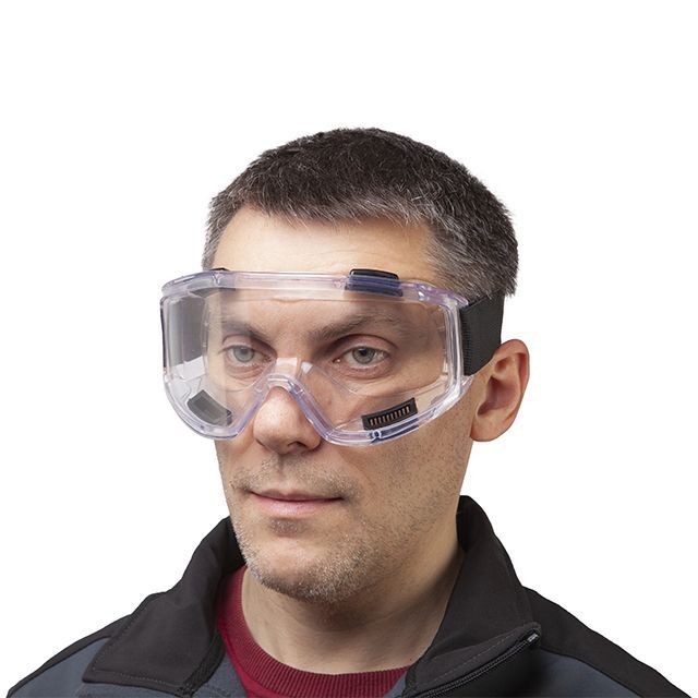 Очки выполнены из прочного поликарбоната и защищают глаза от механических повреждений, что актуально во время выполнения строительных, монтажных работ с различным инструментом, поскольку линзы выдерживают удары мелких твердых частиц. Также защищают от брызг различных жидкостей, капель, пыли.