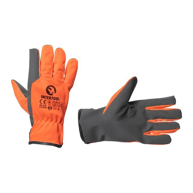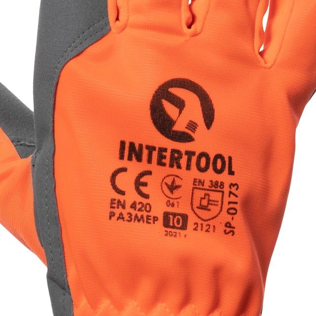 Перчатка кожаная комбинированная из кожи и флуоресцентной оранжевой ткани, 10" INTERTOOL SP-0173