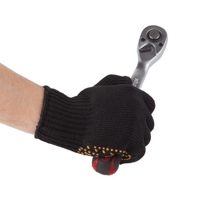 Изготовлены перчатки из 60% хлопка и 40% полиэстера. Такая конструкция обеспечивает отличную вентиляцию рук и гарантирует комфортное выполнение поставленных задач. Эластичный манжет защищает от попадания внутрь перчатки мелких частиц и пыли