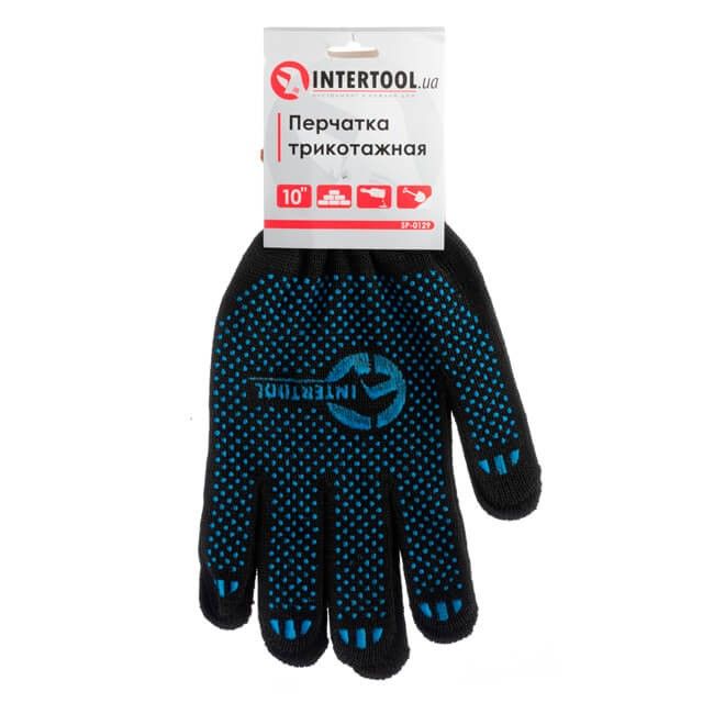 Перчатка трикотажная 70% хлопок, 30% полиэстер, 10", цвет черный, синяя ПВХ точка INTERTOOL SP-0129
