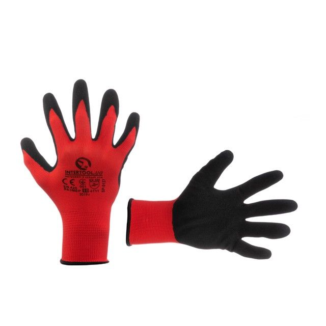 Перчатка трикотажная красная, покрыта черным пористым нитрилом на ладони, 10" INTERTOOL SP-0127