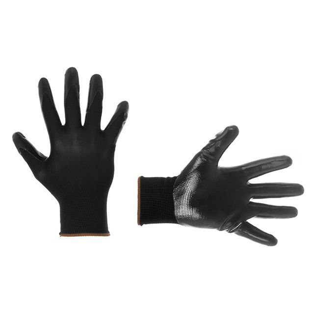 Ладони перчаток покрыты черным нитрилом для более стойкой защиты рук от загрязнений и механических повреждений. При этом перчатки не сковывают движений пальцев. Имеют вязаный манжет для фиксации на запястье против попадания вовнутрь пыли и мелких частиц.