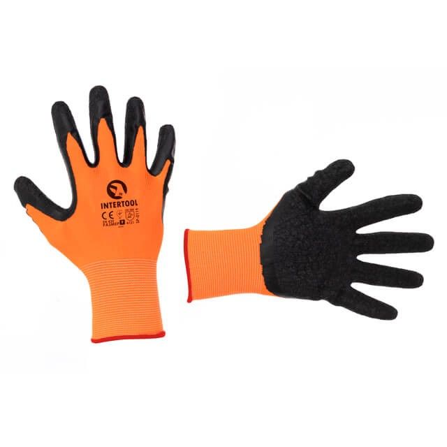 Перчатка трикотажная, синтетическая, оранжевая, покрыта черным рифленым латексом, 11" INTERTOOL SP-0119