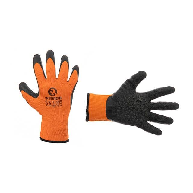 Перчатка трикотажная, синтетическая, оранжевая, покрыта черным рифленым латексом, 9" INTERTOOL SP-0120