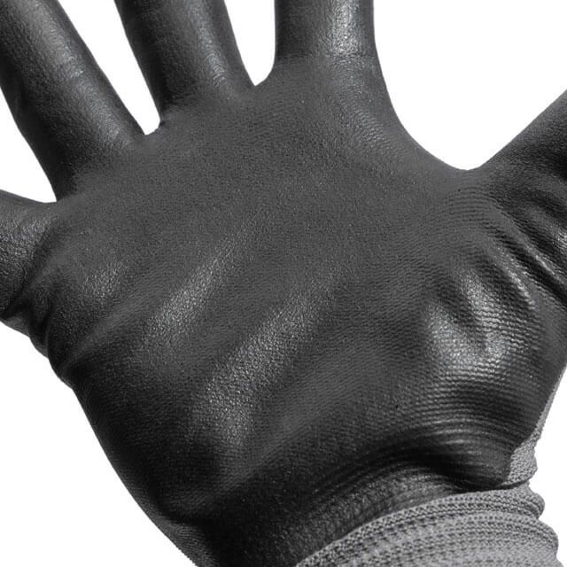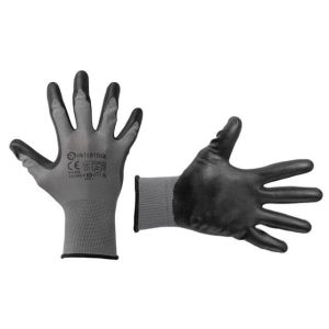 Ладони перчаток покрыты серым нитрилом для более стойкой защиты рук от загрязнений и механических повреждений. При этом перчатки не сковывают движений пальцев. Имеют вязанный манжет для фиксации на запястье против попадания вовнутрь пыли и мелких частиц.