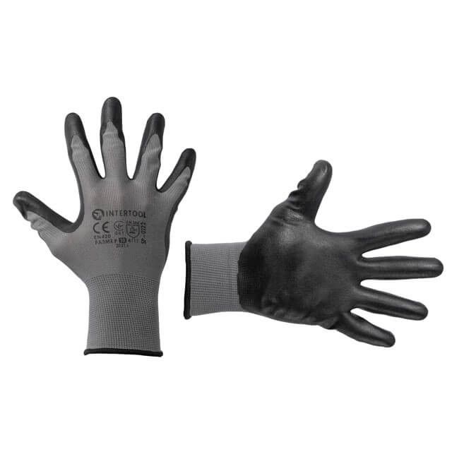 Перчатка трикотажная, синтетическая, серая, покрыта черным нитрилом на ладони, 10" INTERTOOL SP-0122
