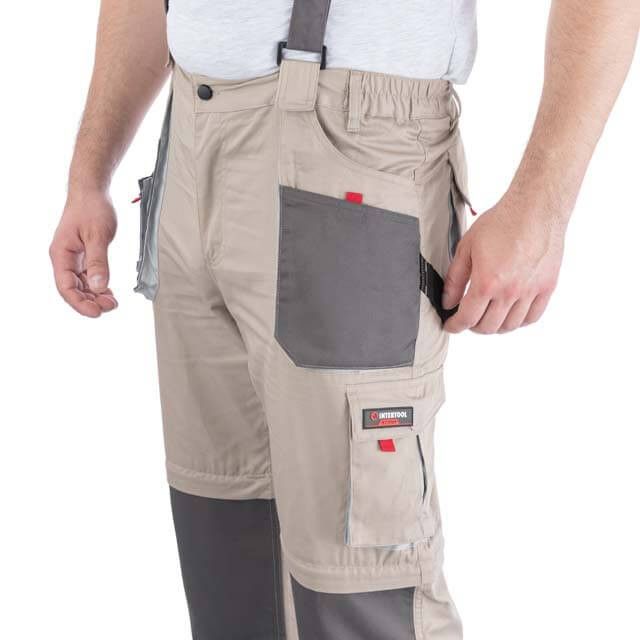 Брюки трансформер рабочие с лямками 6 в 1, 100% хлопок, плотность 180 г/м², S INTERTOOL SP-3041