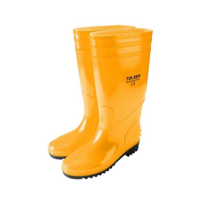 Чоботи 45 р. жовті ПВХ/Нітрил Tolsen — це міцне та надійне взуття, розроблене для захисту від вологи, хімічних речовин та механічних пошкоджень. Виготовлені з поєднання ПВХ та нітрилу, вони забезпечують високий рівень стійкості до масел, жирів, кислот та інших агресивних середовищ. Завдяки антиковзкій підошві чоботи надійно фіксують стопу навіть на слизьких поверхнях, що робить їх ідеальним вибором для будівельних, сільськогосподарських робіт та використання на виробництвах.