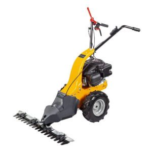Привід: Більшість моделей оснащені бензиновими двигунами (потужністю від 4 до 8 к.с.), які приводять у дію як колеса (самохідний привід), так і ріжучий механізм. Наявність самохідного приводу є критично важливою, оскільки вага та інерція косарки значні, а працювати доводиться на складних, необроблених ділянках.