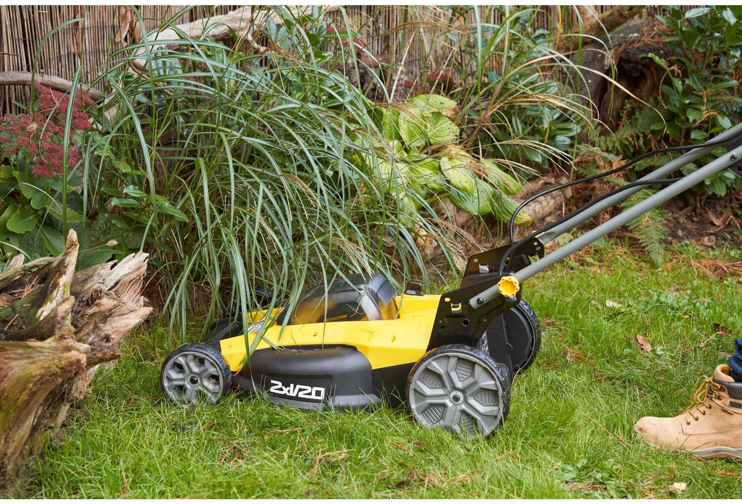Джерело живлення 2-ві АКБ Li-Ion V20, 18 В/4 Аг; Ширина косіння 51 см; Висота косіння 28-72 мм; Травозбірник 40 л