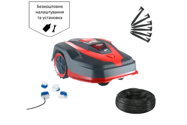 Повний комплект: Робот, док-станція, обмежувальний кабель та фіксатори вже в наборі.