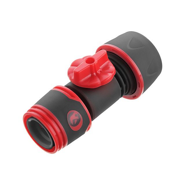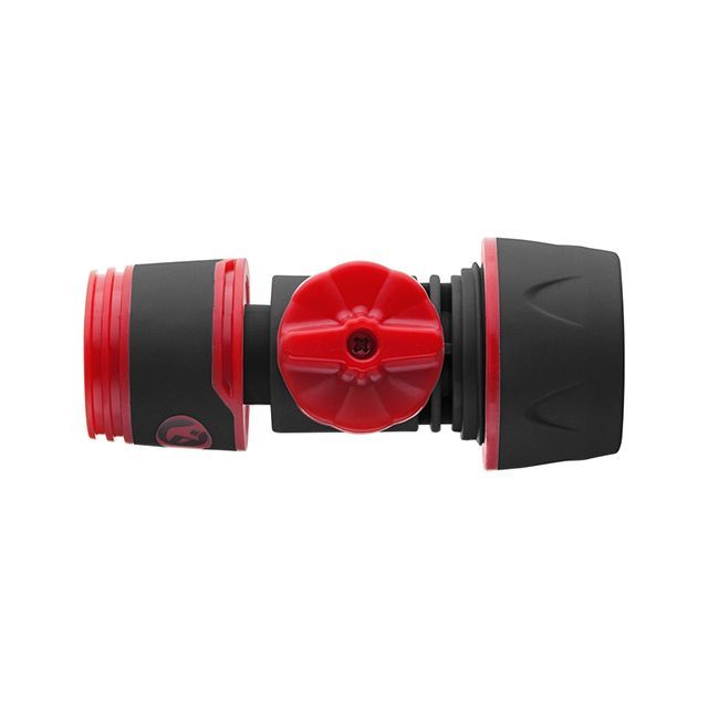 В конструкции коннектора предусмотрен вентиль для перекрытия потока воды или же регулировки напора в системе или перед распылителем. Удобный пластиковый вентиль позволяет быстро выставить необходимое положение.