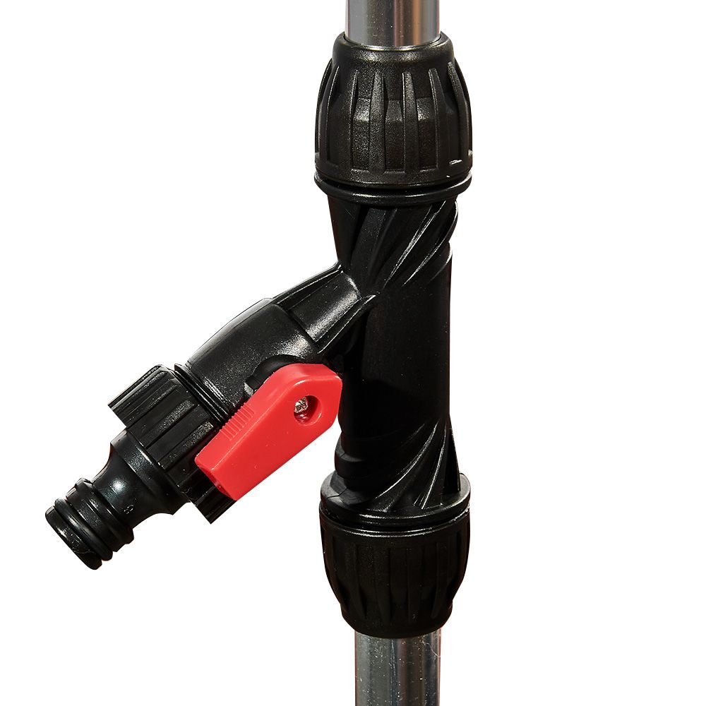 Увімкнення, вимкнення та інтенсивність подачі води регулюється спеціальним краном. Поворотна розпилювальна головка забезпечує можливість вибору кута потоку води в межах 180°. Також може використовуватися як стаціонарний розпилювач для спрямованого поливу та зрошення високих рослин.