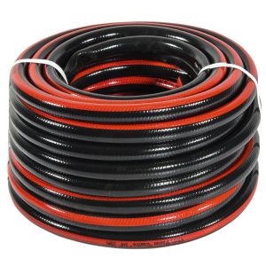 Шланг садовий для поливу Vitals Master "Quattro" - це високоякісний та зручний шланг для поливу саду, городу, газону чи клумб. Шланг має діаметр ¾" і довжину 20 м, що дозволяє охопити велику площу поливу. Шланг виготовлений з полівінілхлориду (ПВХ), який має високу міцність, еластичність і стійкість до впливу води, ультрафіолетового випромінювання та наростання водоростей. Шланг має чотири шари. Прозорий зовнішній шар виконує роль захисту шлангу від механічних пошкоджень та стирання. Сітчасте обплетення з міцної синтетичної нитки, що становить проміжний шар, робить шланг стійким до розтягування та розривів. Третій шар додатково збільшує загальну товщину шланга та його здатність зберігати форму під час експлуатації та зберігання. Внутрішній шар із гладкою стінкою не створює перешкод потоку рідини усередині шланга. Шланг має робочий тиск 20 бар та тиск на розрив 25 бар, що гарантує безпеку та довговічність роботи. Шланг має робочу температуру від – 5 °С до + 45 °С, що дозволяє використовувати його в різних кліматичних умовах.