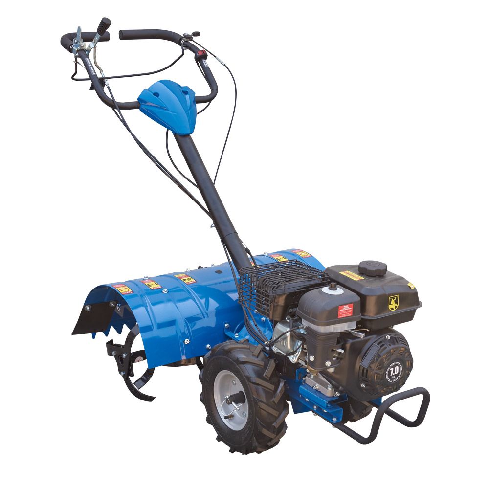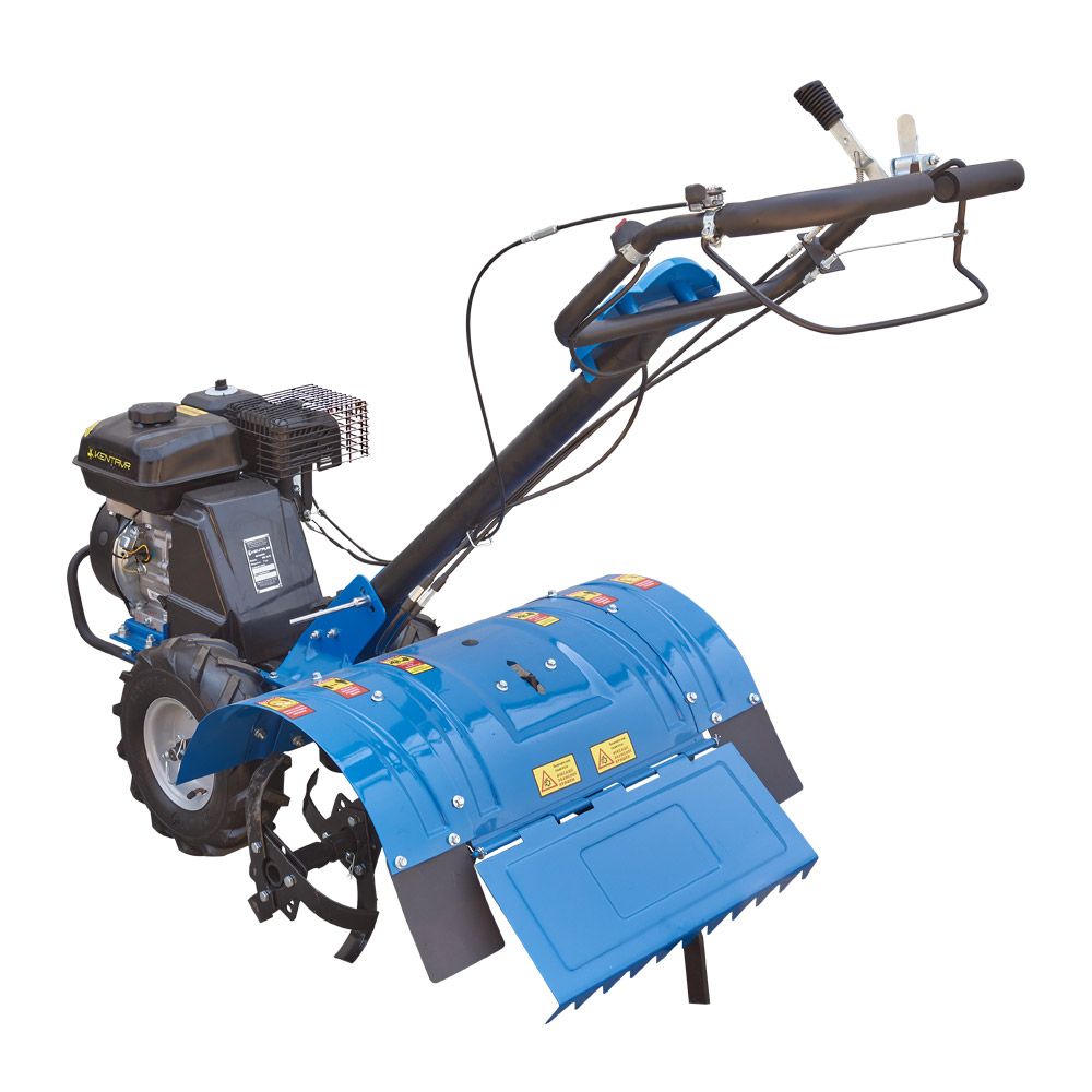 Зниження навантаження відбувається завдяки компоновці, характерної для набагато потужніших професійних машин, а саме − роторна ґрунтофреза винесена назад і приводиться в дію через окремий редуктор. У свою чергу, поступальний рух усього агрегату вперед або назад здійснюється завдяки провідним колесам з шевронним протектором «ялинка».
