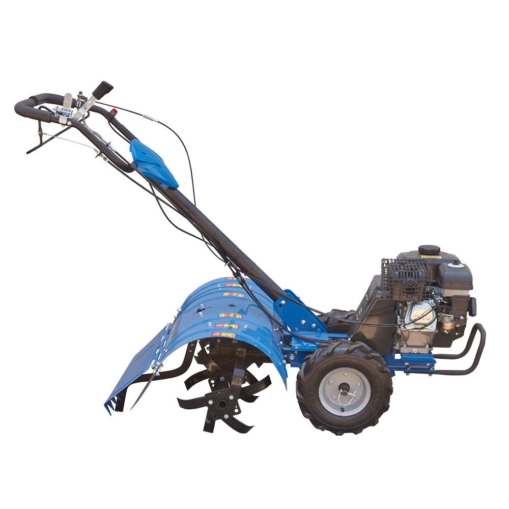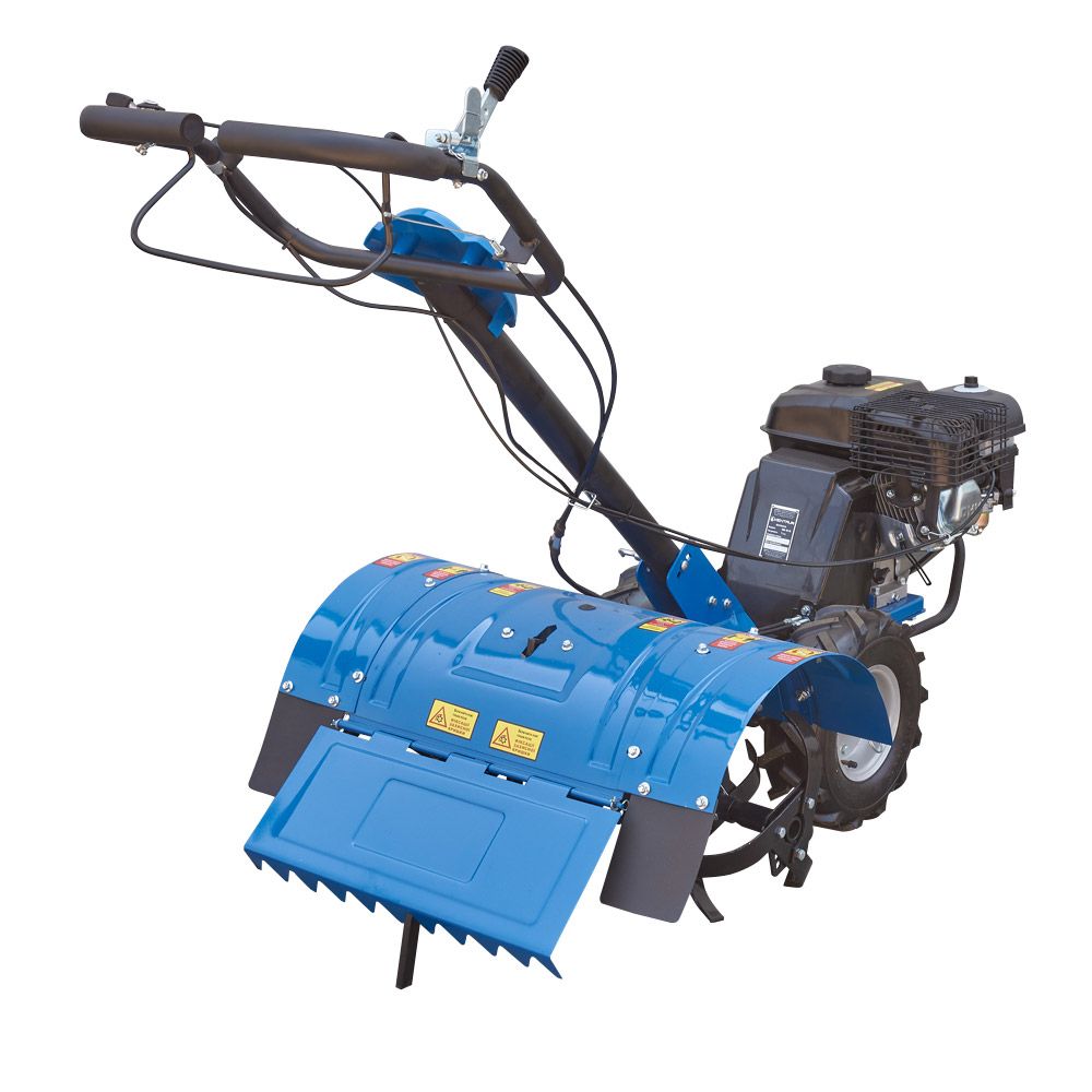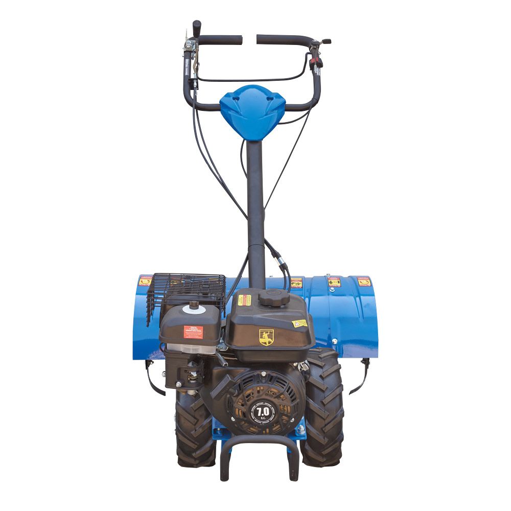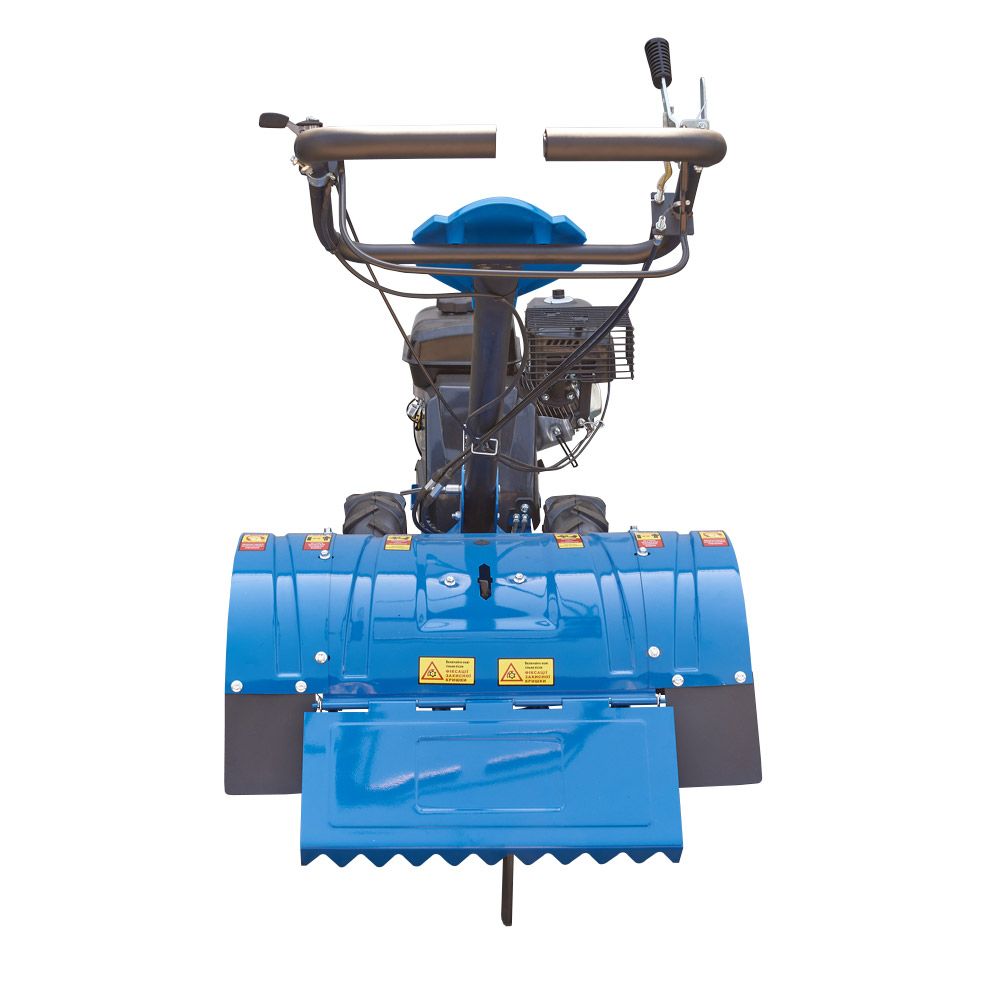 - Висока якість розпушування забезпечується завдяки високій швидкості обертання роторної ґрунтофрези − 250 об/хв. Це майже вдвічі більше, ніж у моделей з ґрунтофрезою замість коліс при відносно повільному (близько 2 км/год) переміщенні мотоблока по оброблюваній ділянці на ведучих колесах. Таким чином, можна за один прохід рихлити ґрунт на всю глибину захоплення ґрунтофрези.