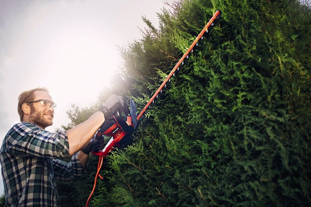 Электрический кусторез Einhell GC-EH 6055/1 с легкостью выполняет работу по обрезке живых изгородей, кустарников и кустов. Кусторез с мощностью двигателя 600 Вт и длиной лезвия 610 мм является мощным и эффективным помощником для садоводов. Двухсторонние ножи долгое время останутся острыми благодаря лазерной заточке и алмазной шлифовке. Прочный металлический редуктор эффективно передает крутящий момент двигателя. Двуручный аварийный выключатель при отпускании останавливает лезвия менее чем за 1 секунду, обеспечивая высокую безопасность во время работы. Правильная эргономика для удобной работы обеспечивается дополнительной ручкой и мягкой накладкой Softgrip на основной рукоятке. Кабельный зажим для крепления кабеля позволяет снять с него натяжение и защищает питающий кабель. В комплекте кустореза есть пластиковая насадка для сбора и отбрасывания обрезков веток и листьев.