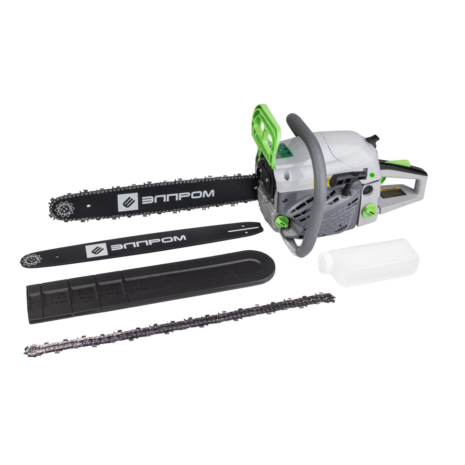 Пила являє собою легкий, компактний пристрій, обладнаний потужним ДВС двотактного типу. Проста конструкція двигуна забезпечує економну витрату пального та надійність роботи. Блок і циліндр виготовлені з легкого магнієвого сплаву, що забезпечує високу стійкість до перегрівання та можливість тривалої роботи. Поршнева група має хромоване покриття, це збільшує робочий ресурс, захищає поршень від прогорання. Корпус із високоміцного пластику обтічної форми зі зручно розміщеними органами керування забезпечить безперешкодну роботу у важкодоступних місцях і захистить оператора від опіків. Пила забезпечена системою гальмування ланцюга, яка дає змогу безпечно розпилювати, а завдяки системі Smart Start інструмент можна легко запустити в будь-якому положенні. Конструкція має шину підвищеної міцності, на якій обертається ланцюг із зубцями з особливо міцного сплаву. Мастило ланцюга здійснюється автоматично, за допомогою пристрою, що дозування. Інструмент вирізняється зниженим рівнем шуму, надійним ручним стартером, безконтактним модулем запалювання. Комплектність : Бензопила ЕБП-7000 1шт. Шина 450 мм 2шт. Ланцюг 2шт. Ємність для приготування паливної суміші 1шт. Ключ свічковий 1шт. Напилок 1шт. Ключ шестигранний 2шт. Чохол на шину 1шт. Паспорт 1шт. Упаковка картонна 1шт.