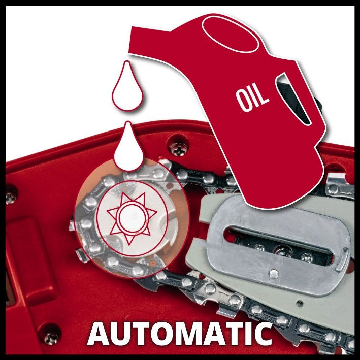 Натяжение цепи без инструментов Масляный бачок для автоматической смазки цепи с большим смотровым стеклом. Алюминиевая телескопическая ручка Дополнительная прорезиненная опорная поверхность для эргономичной работы Регулируемый ремень для переноски Крючок предотвращения натяжения кабеля С электропилой Einhell GC-EC 7520 T даже ветки на высоте можно быстро и удобно срезать с земли. Удобная ручная пилка быстро приведет вашу домашнюю зелень в форму. Алюминиевая телескопическая штанга обеспечивает лучший спектр. Для эргономичной работы электропилы оснащены дополнительной прорезиненной опорой для держания штанги. Натяжение цепи производится без инструментов. Ремень для переноски регулируется и поэтому идеально адаптируется для обеспечения комфорта во время работы. Интегрированный предохранитель кабельного натяжения также используется для безопасности. Масляный бак для автоматической смазки цепи оснащен большим смотровым стеклом для быстрого контроля уровня масла.